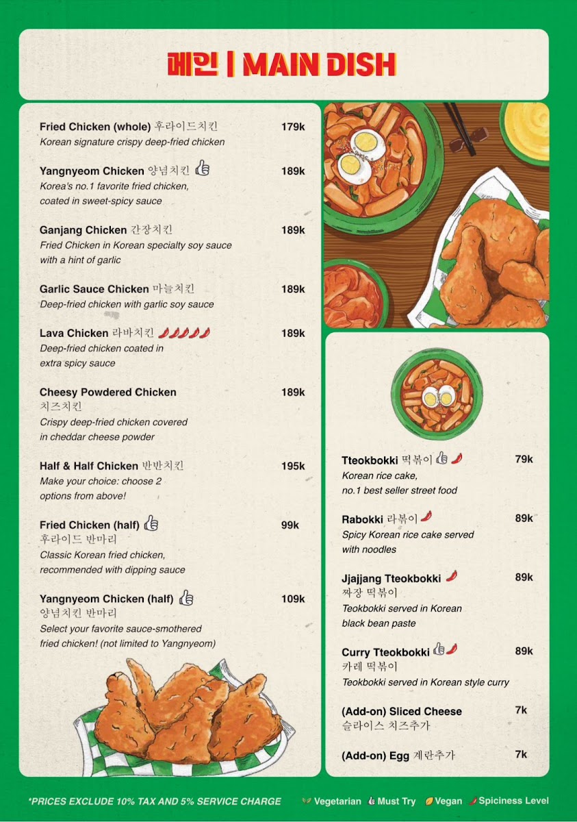 Must-Try Dishes: Relish the soy garlic chicken and embark on a fiery adventure with the lava spicy chicken. Don't miss out on delightful sides like tteokbokki and ramyeon.